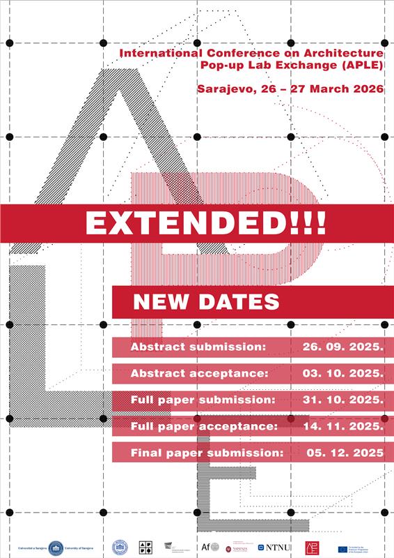 We invite researchers, architects, educators, professionals, and students to participate in the APLE 2026 Conference, which will take place at the Faculty of Architecture, University of Sarajevo, on 26 and 27 March 2026.