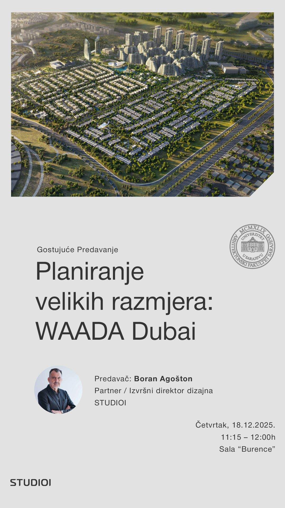 Arhitektonski fakultet sa zadovoljstvom najavljuje gostujuće predavanje arhitekte Borana Agoštona, koja će biti održana u četvrtak od 18. decembra 2025. godine.